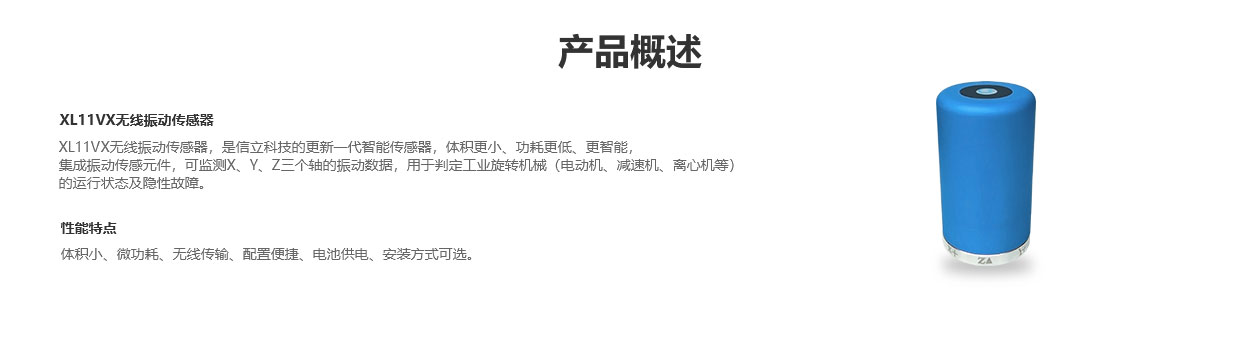 XL11VX無線振動傳感器,是信立科技的更新一代智能傳感器,體積更小 功耗更低,更智能。集成振動傳感元件,可監(jiān)測X、Y、Z三個軸的振動數(shù)據(jù),用于判定工業(yè)旋轉(zhuǎn)機械(電動機、減速機、離心機等)的運行狀態(tài)及隱性故障。