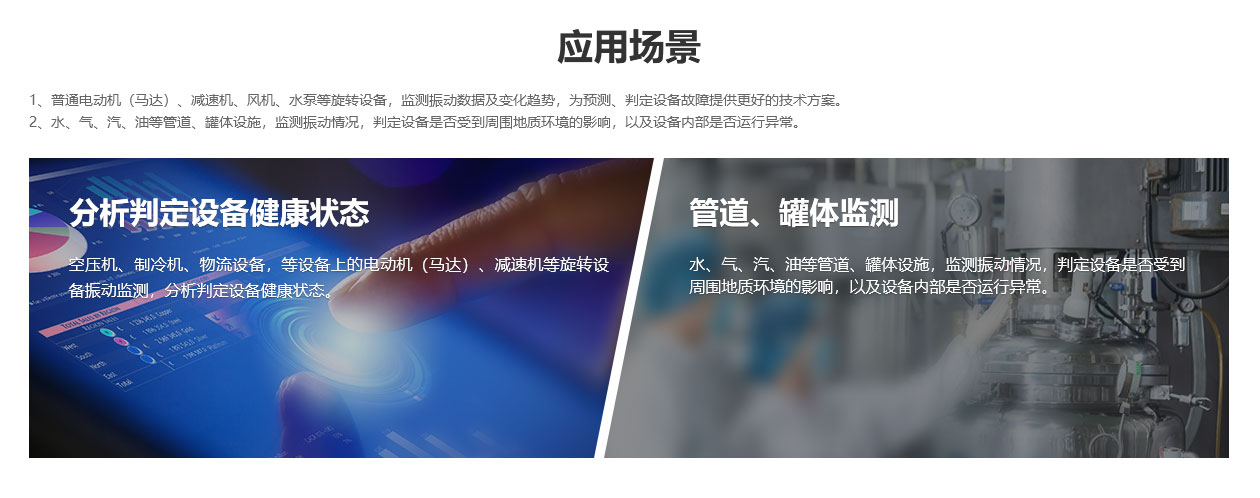 2、水、氣、燃、油等管道、罐體設(shè)施,監(jiān)測振動情況,判定設(shè)備是否受到周圍地質(zhì)環(huán)境的影響,以及設(shè)備內(nèi)部是否運行異常。