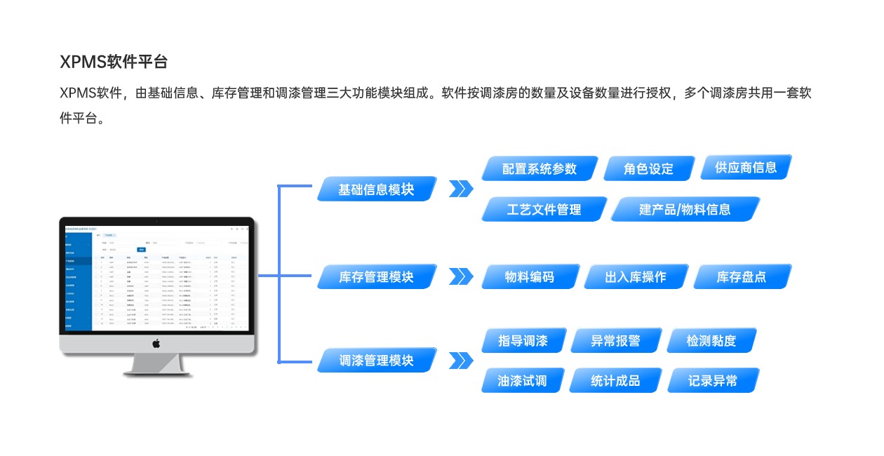 信立調(diào)漆管控系統(tǒng)XPMS,應(yīng)用工業(yè)物聯(lián)網(wǎng)技術(shù)、數(shù)據(jù)庫及智能化平臺軟件,標(biāo)準(zhǔn)、規(guī)范、指導(dǎo)、監(jiān)管調(diào)漆過程,實現(xiàn)調(diào)漆操作智能化、簡單化,有效提升調(diào)漆質(zhì)量、減少漆料浪費,降低人為因素風(fēng)險,是一套智能化的調(diào)漆、制漆管控系統(tǒng)。