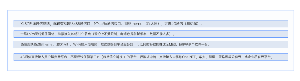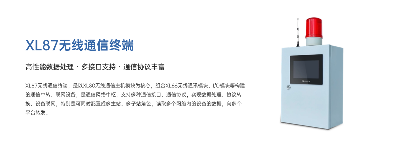 XL87無線通信終端,是以XL80無線通信主機(jī)模塊為核心,組合XL66無線通訊模塊、I/O模塊等構(gòu)建的通信中轉(zhuǎn)、聯(lián)網(wǎng)設(shè)備,是通信網(wǎng)絡(luò)中樞,支持多種通信接口、通信協(xié)議,實現(xiàn)設(shè)備聯(lián)網(wǎng),特別是可同時配置成多主站、多子站角色,讀取多個網(wǎng)絡(luò)內(nèi)的設(shè)備的數(shù)據(jù),向多個平臺轉(zhuǎn)發(fā)。