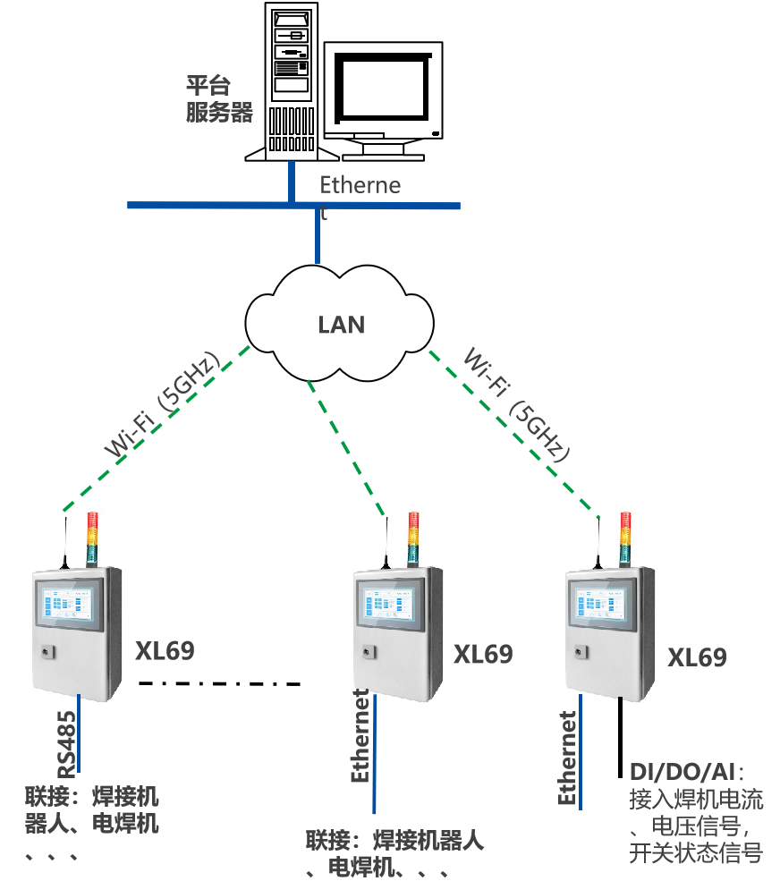 建議每32臺焊機(jī)配1臺XL90網(wǎng)關(guān);每臺焊機(jī),配1臺XL60