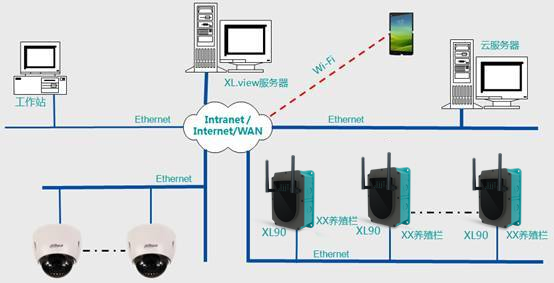 智慧養(yǎng)殖環(huán)境監(jiān)控系統(tǒng)基于傳統(tǒng)服務(wù)器或云服務(wù)器平臺(tái)和XL.SN智能傳感網(wǎng)絡(luò)技術(shù)(Lora、433M、4G、NB-IOT等),采用物聯(lián)網(wǎng)關(guān)、智能環(huán)境監(jiān)測(cè)終端、無(wú)線(xiàn)采集裝置、智能傳感器等,實(shí)現(xiàn)對(duì)空氣溫濕度、光照度、CO?濃度、硫化氫、氨氣、溶氧量、PH值、水溫、銨氮等養(yǎng)殖場(chǎng)環(huán)境參數(shù)的實(shí)時(shí)采集、無(wú)線(xiàn)傳輸、監(jiān)測(cè)和控制。