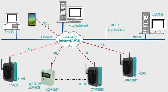 XL68智能環(huán)境監(jiān)測(cè)終端(裝置),采集空氣溫濕度、H?S、NH?、O?、CO?等等氣體濃度,光照、差壓等等信號(hào);簡(jiǎn)單應(yīng)用中選擇XL51溫濕度傳感器采集空氣溫濕度;XL60無(wú)線(xiàn)采集裝置控制養(yǎng)殖欄內(nèi)的參數(shù),起動(dòng)風(fēng)機(jī)、加熱裝置、濕簾、照明,起動(dòng)聲光報(bào)警器,采集用水量、用電量、水壓等等用戶(hù)關(guān)注的參數(shù)。