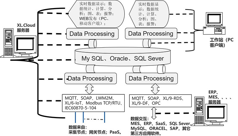 支持MQTT、LWM2M、SOAP,XL/6-IoT、XL/9-DB、XL/9-RDS,等等通信協(xié)議,并可和第三方數(shù)據(jù)庫,Oracle、SAP等交換數(shù)據(jù)