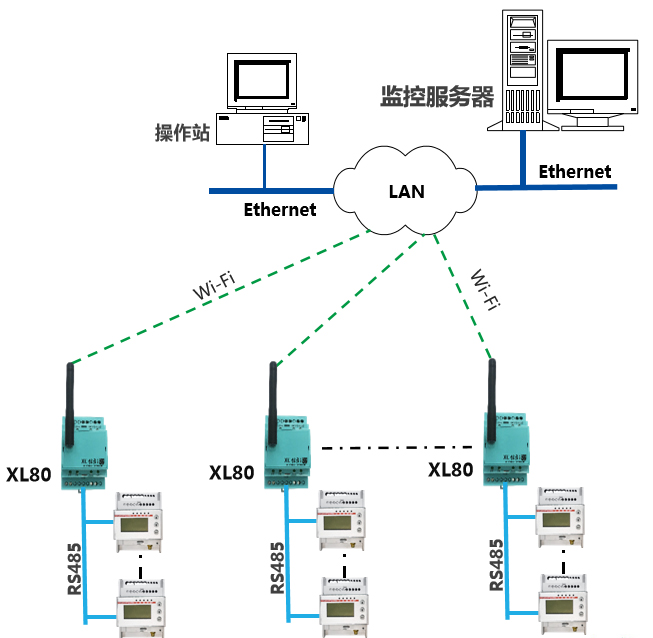 2、XL80智能主機(jī),通過Wi-Fi接入LAN網(wǎng)絡(luò),支持MQTT、SOAP、API、Modbus、XL/9-IoT等等多種通信協(xié)議,接入EMS、MES、ERP等系統(tǒng),不支持協(xié)議對(duì)接的,可直接將數(shù)據(jù)寫入數(shù)據(jù)庫;
