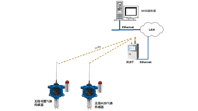 污水處理廠,室內封閉的水處理池,安裝了固定式的無線硫化氫和可燃氣體傳感器,對處理池液面上部空間硫化氫和可燃氣體濃度進行監測。