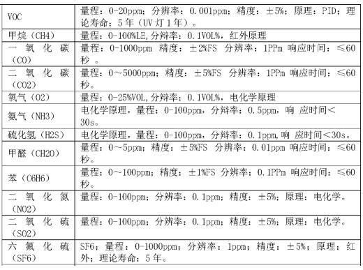 l 多種量程、精度、分辨率、響應時間、線性誤差、重復性、零漂等參數要求的氣體傳感器供用戶選擇。