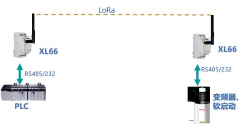 將一對XL66分別與兩臺有RS485/232通信口的設備連接,實現(xiàn)這兩臺串口設備的無線連接、通信。
