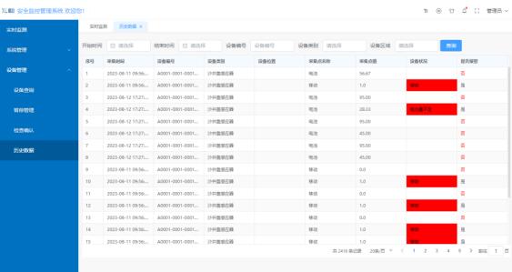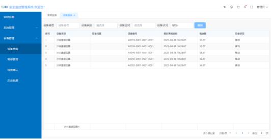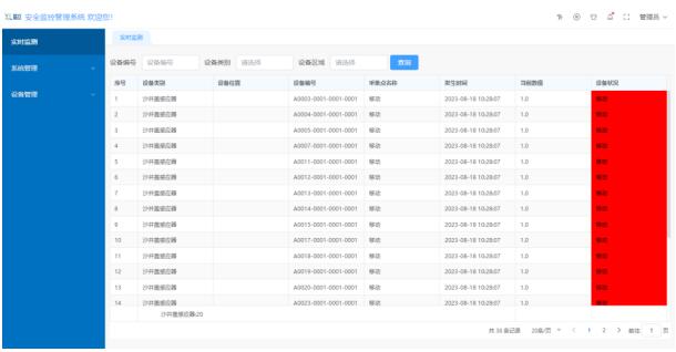 首頁實時顯示處于報警狀態的設備,設備當前狀態、位置一目了然,管理人員根據監測數據及時作出應對處理,避免安全事故的發生。