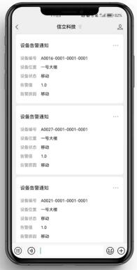 報警信息通過微信公眾號推送給管理人員,隨時隨地掌握現場設備動態,無需通訊費用,更省成本。