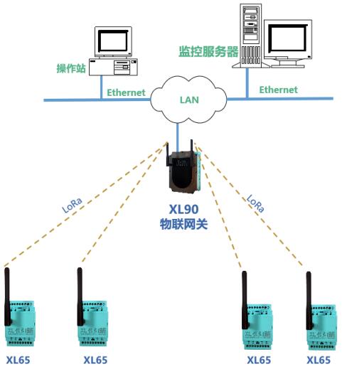 采用LoRa無線傳輸,需選XL90網(wǎng)關(guān)作為無線接收端,進(jìn)行協(xié)議轉(zhuǎn)換和數(shù)據(jù)轉(zhuǎn)發(fā)。LoRa頻段可按不同國家、地區(qū)規(guī)定供貨。